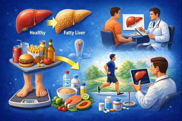 Fatty liver disease is becoming very common in India due to modern lifestyle habits. Poor diet, lack of exercise, obesity, diabetes, and high stress levels are the main reasons for this condition. Many people do not realise they have fatty liver disease because it often shows no symptoms in the early stages. If left untreated, it can lead to serious liver damage. Early diagnosis and proper medical care can help prevent complications and improve liver health.